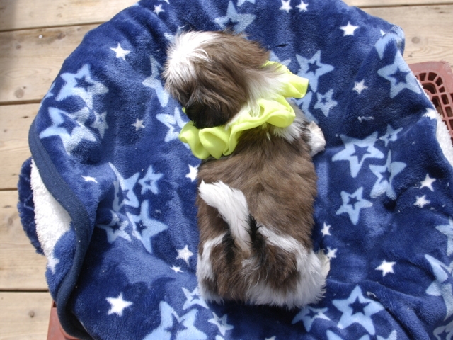 | コメント | お父さんチャンピオンのラッキー君、お母さんがチャンピオン直子のシェリーちゃんから生まれたキュートな女の子です。(黄リボンちゃん) 現時点では、欠点等見当たりません。 |