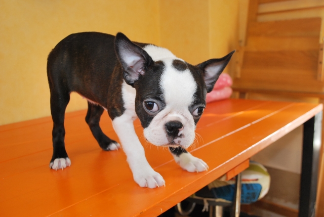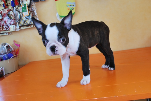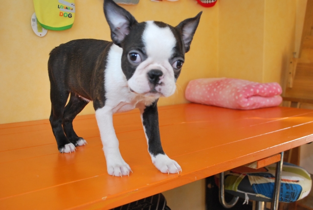 | コメント | 愛嬌たっぷりのボストン・テリアの女の子です。 7月1日現在体重は2,6㎏。 ワクチン2回分(10,000円)は別途お願い致します。 |