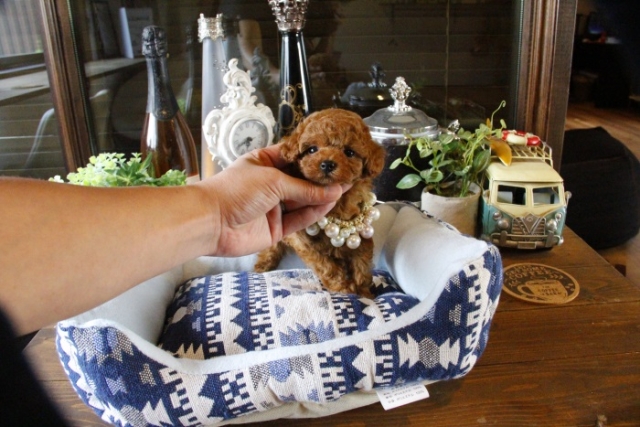 本日、我が家に小さな可愛い女の子のトイプードルがやって来ました。 遠距離という事もあり、暑い時期、飛行機の事なども心配していましだが、家に着いた途端、元気に走り、食欲も旺盛で、今まで大切に育てられてきたのだなぁ、ということがよくわかりました。 連休中にも関わらず、戸田様には、伊丹空港まで連れて来て頂き、こちらの質問にも的確に答えて下さいました。 大変信頼できるブリーダーです。 遠距離で悩まれている方も、安心して新しい家族を迎えられますよ。(兵庫県 男性)