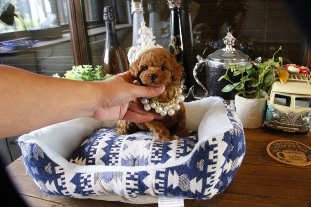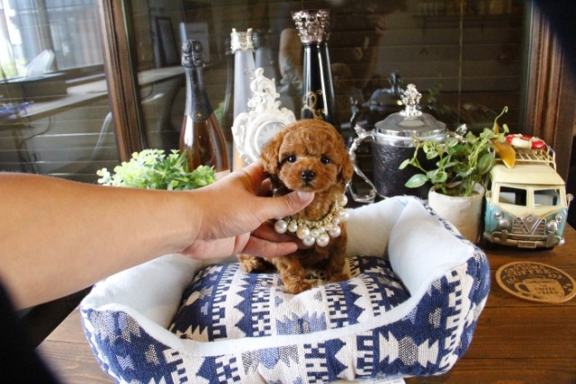| コメント | 父1.2kg 母2.4kg レッドの男の子の紹介です☆ 濃いレッドの毛色にこの生後でこの瞳の大きさ これからさらに丸く大きくなります。 お客様が多いので少し早めの掲載になります。 大人しく人懐っこい性格なので初めての方にも飼いやすい仔です☆ 特にこの時期、生体ですので他の家族が先に決まってしまうことも 多々ありますのでご理解のほどよろしくお願いいたします お留守番、夜鳴きはすでにしつけ済みです♪ お早目にお問い合わせくださいませ ペットショップやオークション出しのブリーダーと違い欧米のブリーディング同様、親や兄弟と社会期を過ごさせることで 人間と暮らした時にスムーズに暮らせるようにしております。 親犬達も家族として朝7時からドックランで遊び、全室冷暖房完備の部屋で過ごし、専門のスタッフや専門学校の方々と協力し合いながら 衛生管理に努めております。 犬舎の特徴としましては、東京や神奈川近郊の為マンションのお客様が8割を占めます。その為小さな1キロから2.8キロまでに収まるように、 母犬を2.8キロまでと決めてブリーディングをしている為、後で極端に大きくなる子はいません。 瞳の丸く大きなところやマズル(鼻先)が短いもの特徴で、父犬、母犬、全て私が全国の可愛いトイプードルを一頭、一頭厳選して親犬としてブリーディングした子犬のみを掲載しております。 こだわりとしては、お客様がお迎えされた後、その子がTV出演、雑誌やカレンダーのモデルとして活躍の場が増え我が家を忘れないでいてもらいたい為、 本気でこだわりを持って常にトイプードルを飼うなら此処だと皆様全員に思われる犬舎でありたいと思います。 ありがたいことに今では、雑誌やTV出演、カレンダーなど多くの出身トイプードルちゃんたちが可愛く撮影されお客様からも喜びの声を頂いております。 我が家は35頭の小さな犬舎ではありますが、頭数が多いところでは管理が行き届かない、PRA若年性白内障などの遺伝性疾患の発症がないように努めております |