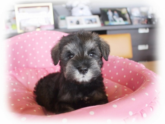 シュナウザーを主力にされているブリーダーさんだと認識しており、ボスちゃんはどうかなあと正直不安でしたがとても可愛く健康的なボスちゃんをいただきました。 掲載されていた写真より実物は想像以上に可愛くて即決し見学させていただいたその日に連れて帰りました。連絡をして、翌日行きますぅって勝手な申し出にも関わらず敏速かつ親切に対応して頂き大満足です。契約に対しても一つ一つ丁寧に説明してくださり、わかりやすかったです。この度は可愛いボスちゃんとのご縁をいただき、本当に有り難うございました。 (大阪府 女性)