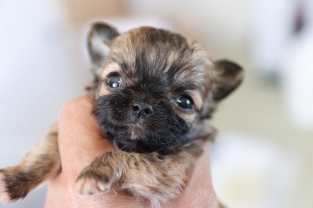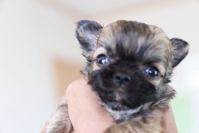 | コメント | 極小サイズのロンチー君です♥ 噛み合わせが、若干オーバーですが 生活に支障はありません。 神経質な方はご遠慮ください。 5/20現在の体重は295g パパ フォーン&ホワイト スムース 2.3キロ ママ フォーン スムース 2キロ |
