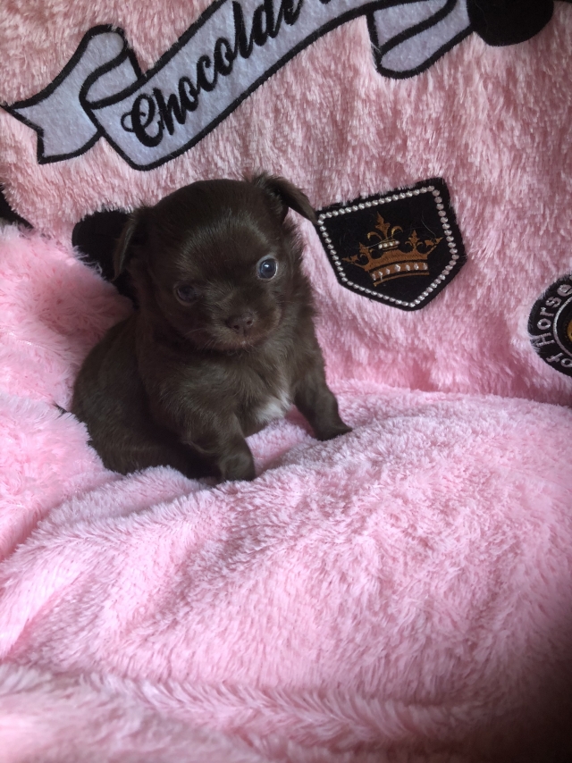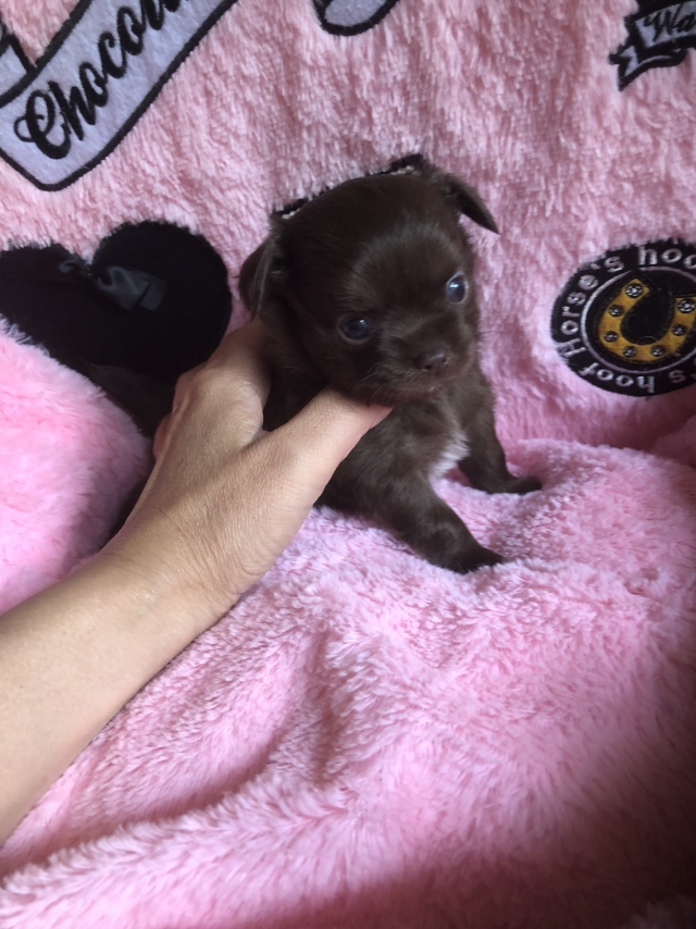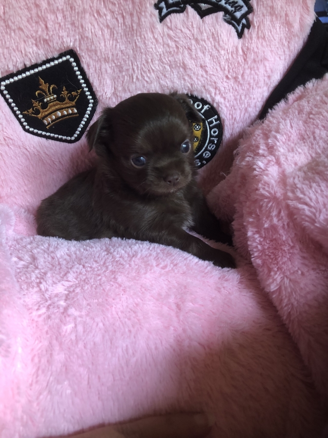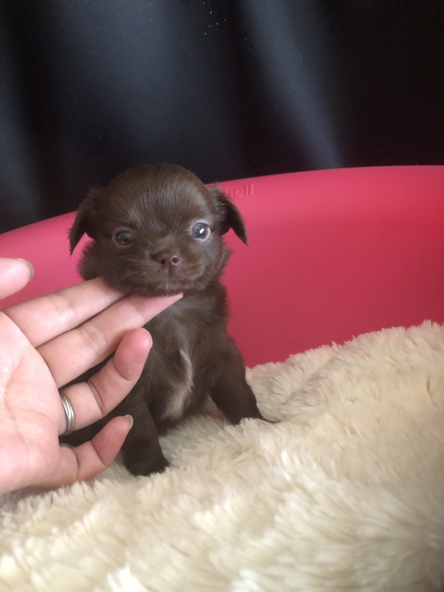 チワワ(ロング) チョコ&ホワイト ♀(女の子) 茨城県【 ブリーダーズ 】