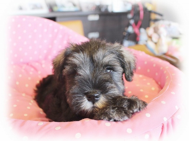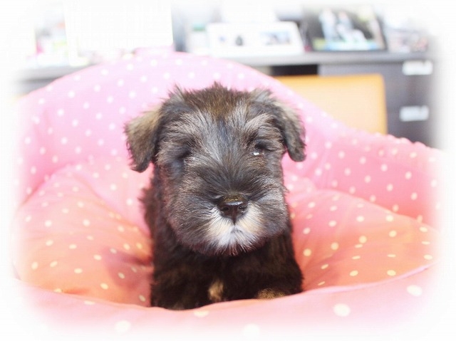 シュナウザーを主力にされているブリーダーさんだと認識しており、ボスちゃんはどうかなあと正直不安でしたがとても可愛く健康的なボスちゃんをいただきました。 掲載されていた写真より実物は想像以上に可愛くて即決し見学させていただいたその日に連れて帰りました。連絡をして、翌日行きますぅって勝手な申し出にも関わらず敏速かつ親切に対応して頂き大満足です。契約に対しても一つ一つ丁寧に説明してくださり、わかりやすかったです。この度は可愛いボスちゃんとのご縁をいただき、本当に有り難うございました。 (大阪府 女性)