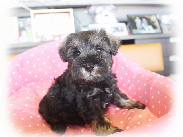 シュナウザーを主力にされているブリーダーさんだと認識しており、ボスちゃんはどうかなあと正直不安でしたがとても可愛く健康的なボスちゃんをいただきました。 掲載されていた写真より実物は想像以上に可愛くて即決し見学させていただいたその日に連れて帰りました。連絡をして、翌日行きますぅって勝手な申し出にも関わらず敏速かつ親切に対応して頂き大満足です。契約に対しても一つ一つ丁寧に説明してくださり、わかりやすかったです。この度は可愛いボスちゃんとのご縁をいただき、本当に有り難うございました。 (大阪府 女性)