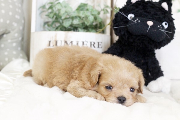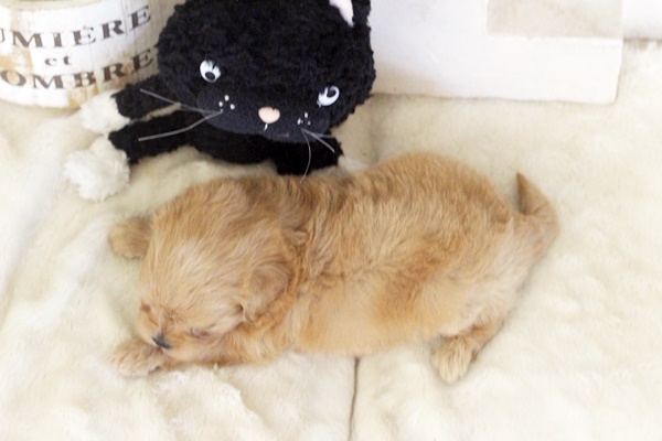 | コメント | ご覧頂きまして、有難うございます。 皆様に喜んで頂けますように、日々努力を重ねております。 健康状態 とても元気です。(*^▽^*)順調に成長しています。 子犬ちゃんの特徴 とっても可愛いマルプーちゃんです。 体重 491g (5/21現在) パパ Tプードル アプリ 杏仁くん 1.8㎏ ママ マルチーズ 3㎏ パパ・ママわんちゃん達の特徴 見た目もさることながら、性格も重視しております。 気性の荒い子は繁殖に適さないと考えていますので、パパ・ママわんちゃん達は穏やかです。 お問い合わせ・予約について 一時お預かり金を先に入金された方が優先されますので、問い合わせが早くても決まる場合があります。 見学予約を頂いた場合でも、見学予約日前に決まる場合もありますので、ご了承下さい。 その際は事前にお知らせいたします。 遠方の方について 2013年9月から動物愛護法の改正により対面販売が義務ずけられました。 こちらに来られてのご契約をお願いしたい所ですが、ご事情が許さない場合が多々あります。 地域の代行業者様に仲介して頂き販売する事は可能でありますので、ご相談下さい。 その際代行手数料は発生いたします。 伊丹空港・・・10800円 羽田空港・・・16800円 セントレア空港・・・16800円 その他に地域も対応可能です。 空港貨物の場所で対面して気に入らない場合はキャンセルもできます。その際はお預かり金は全額返金されますが 往復の送料、代行手数料全額はお客様ご負担となりますので、ご注意下さい。 お客様、わんちゃんにも負担がかかりますので、動画・画像でよく確認されて決めてください。 お迎えの時期 1回目のワクチン・健康診断をすませ、しっかり食事をとれる状態でお渡しとなります。 生後55日前後を予定しておりますが、健康状態・大きさ等により延期する場合もありますので、ご了承下さい。 ワクチン代 5種 5 000円 健康診断書をご希望の場合 別途 2000円 プレゼント お持ち帰りの際のバスケットかご 空輸の場合はそのままお持ち帰りできます。 *土日祝日は見学などの対応で多忙な為、お問い合わせへのメール返信が週明けになってしまう事も ございますのでご了承下さいませ。 |