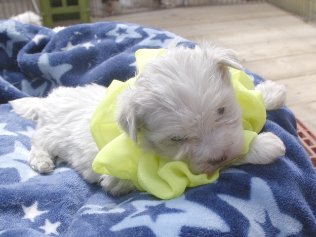 この度はとっても元気な子をありがとうございました。 見学の際は駅まで迎えにきていただき、説明もとても丁寧で安心しました。 空輸で送っていただき、ありがとうございました。 迎えてから一週間が経ち、家にも慣れて、へそ天で寝ています。 トイレトレーニングも、来た時から8割できていて、今ではほとんど失敗しなくなりました。 可愛く元気で、毎日元気に飛び跳ねています。(奈良県 女性)