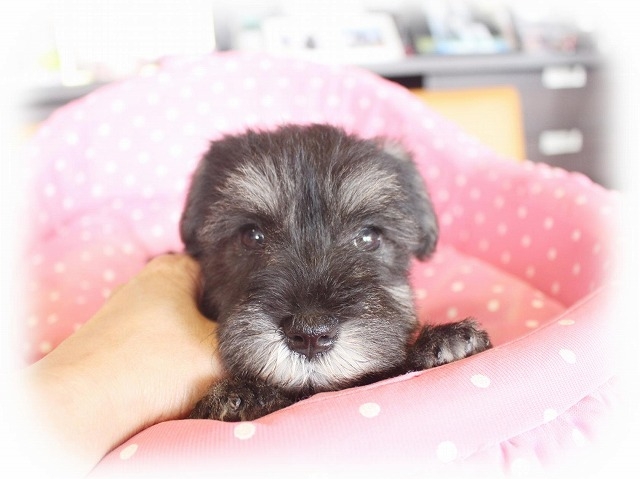 シュナウザーを主力にされているブリーダーさんだと認識しており、ボスちゃんはどうかなあと正直不安でしたがとても可愛く健康的なボスちゃんをいただきました。 掲載されていた写真より実物は想像以上に可愛くて即決し見学させていただいたその日に連れて帰りました。連絡をして、翌日行きますぅって勝手な申し出にも関わらず敏速かつ親切に対応して頂き大満足です。契約に対しても一つ一つ丁寧に説明してくださり、わかりやすかったです。この度は可愛いボスちゃんとのご縁をいただき、本当に有り難うございました。 (大阪府 女性)