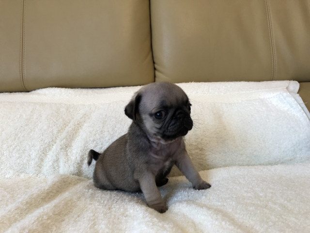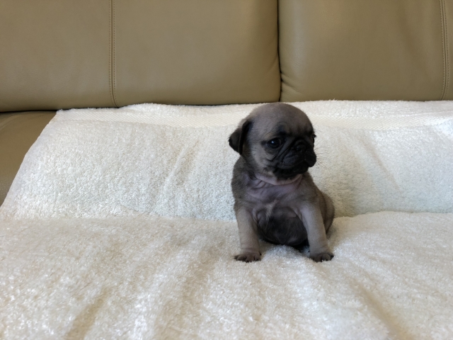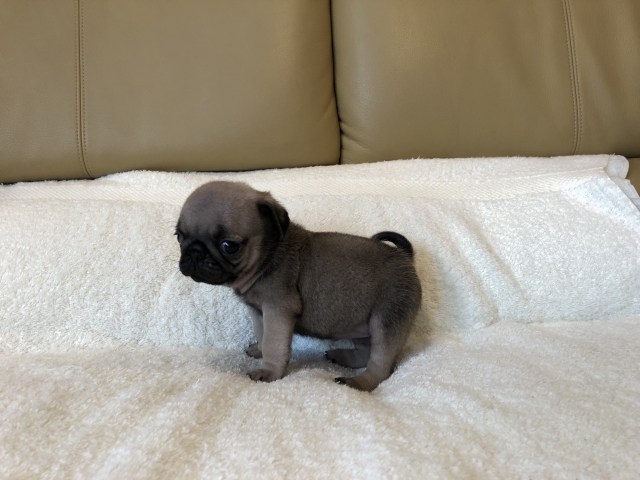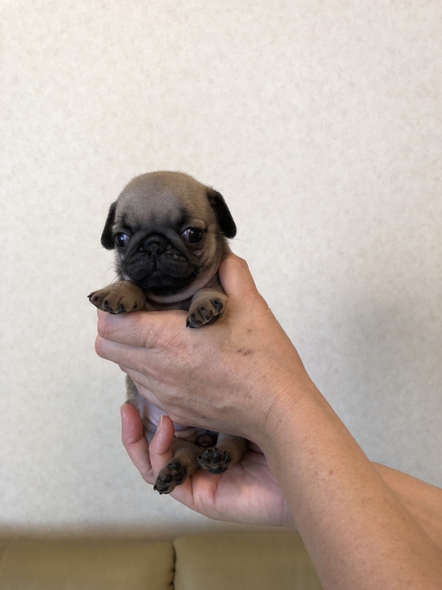 パグの飼育歴は30年以上になります。今年親の代から買っていた 黒パグを亡くしてから家を埋め尽くしているパググッズを見るたびに いつか新しい仔を迎えたいと思うようになりました。 北関東でブリーダーさんを探しているうちに木村様を知り、見学、購入の運びとなりました。 このたび性格も大変おおらかな素晴らしい仔犬をお譲りいただき大変感謝しております。 (茨城県 男性)