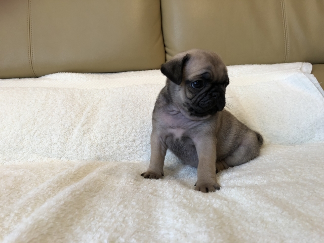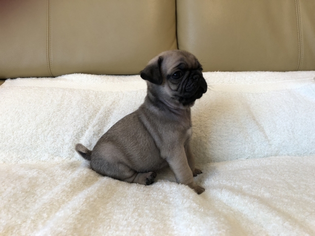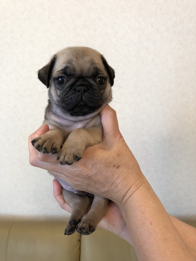 パグの飼育歴は30年以上になります。今年親の代から買っていた 黒パグを亡くしてから家を埋め尽くしているパググッズを見るたびに いつか新しい仔を迎えたいと思うようになりました。 北関東でブリーダーさんを探しているうちに木村様を知り、見学、購入の運びとなりました。 このたび性格も大変おおらかな素晴らしい仔犬をお譲りいただき大変感謝しております。 (茨城県 男性)