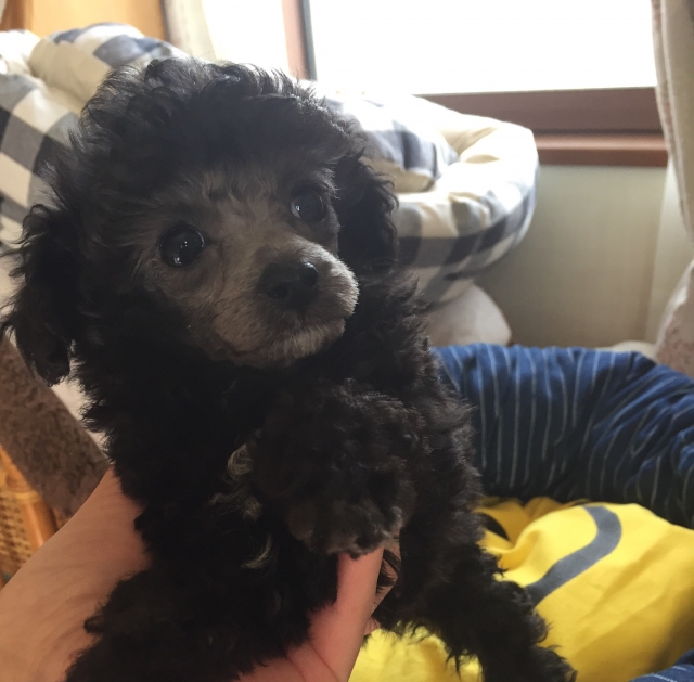 問い合わせをしてから、メールや電話でのやり取りから、愛情たっぷり感が感じられお話が進み、富山迄お迎えに行く事が出来ず京都駅までお連れ下さいました。少し疲れた感があったので反対にお迎えに富山迄行かなくってよかったと思いました。すぐに富山迄戻らずしばらくは居るので何かあった時はご連絡くださいとのお言葉ですぐに自宅に戻り様子など連絡しておりました。心配する事なく元気いっぱいです。はじめてお会いするのに不安もありましたが、メールや電話からも素敵な方かもでしたが…とても素敵な方でした。ご縁ができました事に不思議感も。これからも、ずーとご縁が続きそうです。 先住犬にも臆することなく過ごしております。玄関チャイムが鳴っても吠える事がなくとても良い子できれいな艶々まっ黒とても愛らしいです。 愛情たっぷりの素敵なブリーダーさんです。 (京都府 女性)