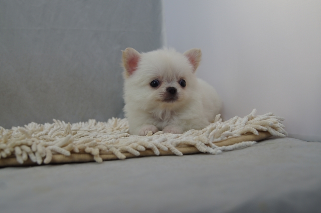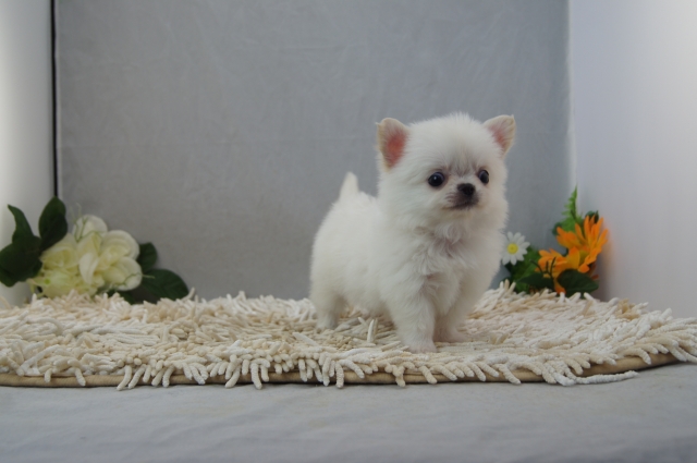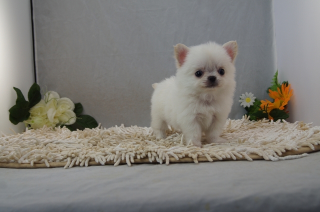 | コメント | ☆とってもとってもカワイイ♪フワフワモコモコの極小!超激カワ♪クリームの男の子ちゃんのご紹介です☆ クリクリまん丸おめめ!お顔のとってもとってもカワイイ超超超激カワちゃん(^^)♪ 毛量たっぷりフワフワモコモコでとってもとってもカワイイでしょ(^^)♪ 毛量がたっぷりの本当のロングコートチワワちゃんです!! お鼻もとっても短く、お顔もとっても詰まっていてオデコも張っていてチワワちゃん理想のアップルヘッドですよ♪ おててもとってもと~っても短くて本当にとってもカワイイですよ(^^)♪ 全体のバランスのとれたスーパーモデル級のスタイルですよ!! 性格も◎すごく良く、甘えたで、人間がとっても大好きでシッポフリフリしながら歩いた後をちょこちょことついてくるとっても人懐っこい性格です(^^)♪ ゲージ内でのおトイレは、ほぼ完璧ですのでゲージ外でのおトイレもすぐに覚えてくれることかと思いますよ!!! 6月6日現在(生後56日) 現在 440gです!とってもとっても小さい男の子ちゃんですよ! 小さいですが、とっても元気ですっごくカワイイ癒し系の男の子ちゃんですよ♪ ●父:フォーン&ホワイト← この子の曾お爺さんJKCチャンピオンでとっても良血統ですよ!! ●母:クリーム ←この子の父方のお爺さんJKCチャンピオン、曾お爺さんアメリカチャンピオン、曾お婆さんJKCチャンピオン、母方のお爺さんJKCチャンピオン、曾お爺さんもJKCチャンピオンでとってもとっても良血統の血筋ですよ!! 両親共にとっても良血統ですよ!! 現在、お腹いっぱいしっかり食べていて元気に遊んでいます♪ 健康状態もバッチリ◎良好です。 ご飯の食べもとっても良い仔なので、ワンちゃんをはじめてお育てになるお客様も安心してワンちゃんをお迎え頂けますよ♪ 1回目の5種ワクチン、血統書代、フード1.4kg、ミルク、おもちゃサービスさせて頂いております!! 当日のご見学にもできる限りご対応させて頂きますので、どうぞ お気軽にお問い合わせ下さいませ。 ご質問やご相談などもお気軽にお問い合わせ下さいませ。 最寄り駅は南海高野線北野田駅です。 駅からは徒歩10分程度です!! 駐車場も完備致しておりますのでお車でもお気軽にお越し下さいませ。 |