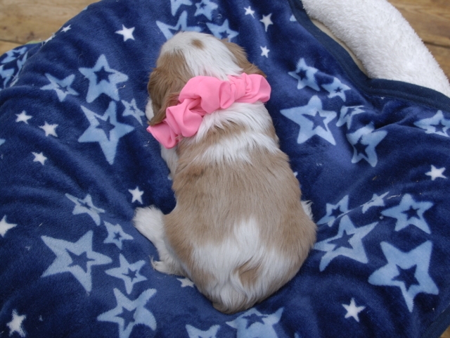 | コメント | お父さんはJKCチャンピオンの家斉君、お母さんはチャンピオン直子スカーレットちゃんからキュートな女の子です。(桃リボンちゃん) 健康状態は、問題有りません。 すくすく育っています。 |