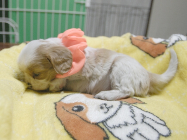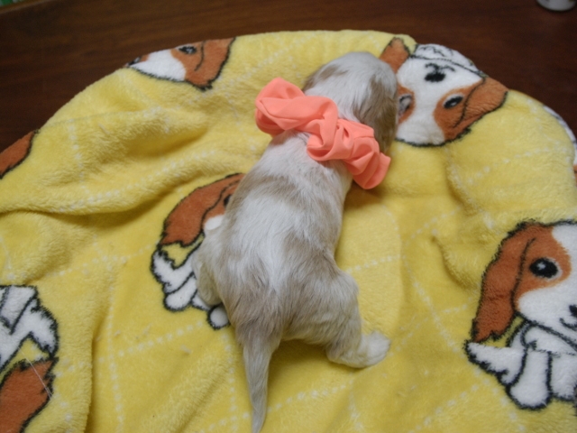 | コメント | お父さんはJKCチャンピオンの家斉君、お母さんはチャンピオン直子スカーレットちゃんからキュートな女の子です。(橙リボンちゃん) 健康状態は、問題有りません。 すくすく育っています。 |