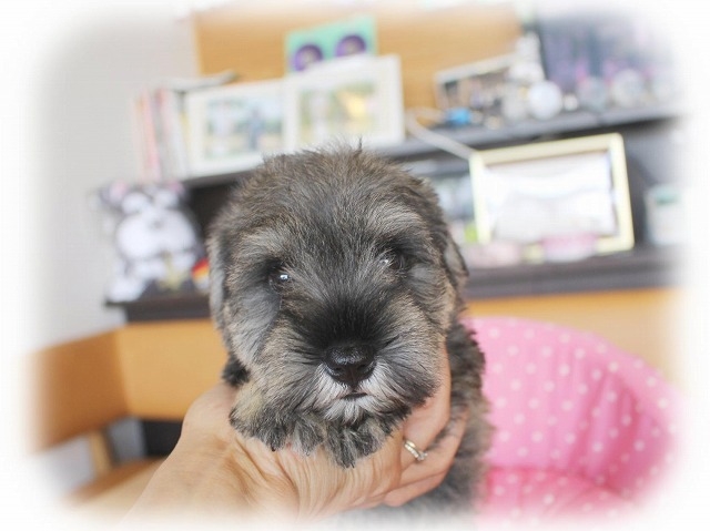 シュナウザーを主力にされているブリーダーさんだと認識しており、ボスちゃんはどうかなあと正直不安でしたがとても可愛く健康的なボスちゃんをいただきました。 掲載されていた写真より実物は想像以上に可愛くて即決し見学させていただいたその日に連れて帰りました。連絡をして、翌日行きますぅって勝手な申し出にも関わらず敏速かつ親切に対応して頂き大満足です。契約に対しても一つ一つ丁寧に説明してくださり、わかりやすかったです。この度は可愛いボスちゃんとのご縁をいただき、本当に有り難うございました。 (大阪府 女性)