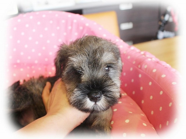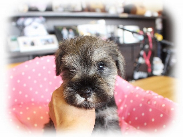 シュナウザーを主力にされているブリーダーさんだと認識しており、ボスちゃんはどうかなあと正直不安でしたがとても可愛く健康的なボスちゃんをいただきました。 掲載されていた写真より実物は想像以上に可愛くて即決し見学させていただいたその日に連れて帰りました。連絡をして、翌日行きますぅって勝手な申し出にも関わらず敏速かつ親切に対応して頂き大満足です。契約に対しても一つ一つ丁寧に説明してくださり、わかりやすかったです。この度は可愛いボスちゃんとのご縁をいただき、本当に有り難うございました。 (大阪府 女性)
