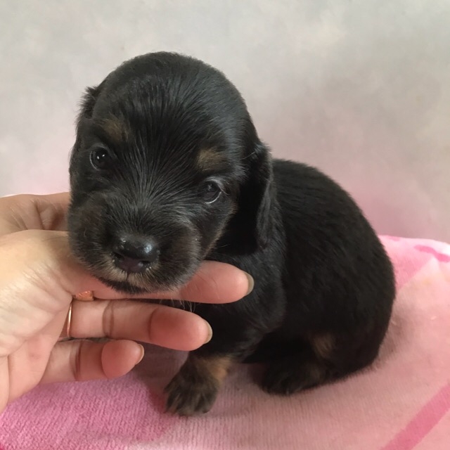 ミニチュア・ダックスフンド(ロング) ブラック・タン ♂(男の子) 宮崎県【 ブリーダーズ 】