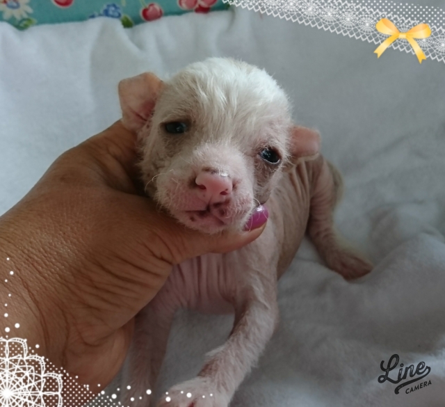 | コメント | この子の場合、お顔は、剃っていただくようになります。 兄妹の中で一番毛があります。 お手入れは、簡単です! お手入れは、お教えてあげますので~ご安心下さいね。 詳しくはお問い合わせください。 |