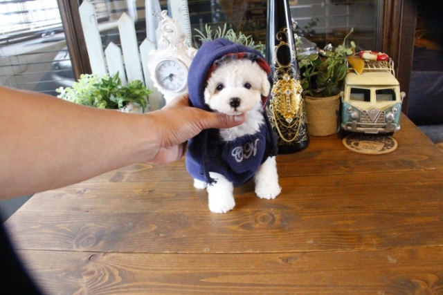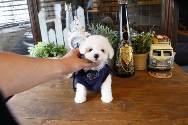 | コメント | 父1.6㎏ 母1.8㎏ おっとりタイプの女の子で毛量も多く 気品がある綺麗さです。 姉妹で寝るときには優しく妹を温めながら 寝てくれるとてもいい子です。 このこはお母さんよりのタイニーサイズ予想です のでお子様がいるご家庭で安心してお迎えください 生体ですので他の家族が先に決まってしまうことも 多々ありますのでご理解のほどよろしくお願いいたします 大人しく人懐っこい性格なので初めての方にも飼いやすい仔です☆ お留守番、夜鳴きはすでにしつけ済みです♪ ペットショップやオークション出しのブリーダーと違い欧米のブリーディング同様、親や兄弟と社会期を過ごさせることで 人間と暮らした時にスムーズに暮らせるようにしております。 親犬達も家族として朝7時からドックランで遊び、全室冷暖房完備の部屋で過ごし、専門のスタッフや専門学校の方々と協力し合いながら 衛生管理に努めております。 犬舎の特徴としましては、東京や神奈川近郊の為マンションのお客様が8割を占めます。その為小さな1キロから2.8キロまでに収まるように、 母犬を2.8キロまでと決めてブリーディングをしている為、後で極端に大きくなる子はいません。 瞳の丸く大きなところやマズル(鼻先)が短いもの特徴で、父犬、母犬、全て私が全国の可愛いトイプードルを一頭、一頭厳選して親犬としてブリーディングした子犬のみを掲載しております。 こだわりとしては、お客様がお迎えされた後、その子がTV出演、雑誌やカレンダーのモデルとして活躍の場が増え我が家を忘れないでいてもらいたい為、 本気でこだわりを持って常にトイプードルを飼うなら此処だと皆様全員に思われる犬舎でありたいと思います。 ありがたいことに今では、雑誌やTV出演、カレンダーなど多くの出身トイプードルちゃんたちが可愛く撮影されお客様からも喜びの声を頂いております。 我が家は50頭の小さな犬舎ではありますが、頭数が多いところでは管理が行き届かない、PRA若年性白内障などの遺伝性疾患の発症がないように努めております |