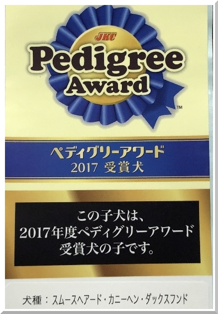 | PR | 2017年度ぺディグリーアワード受賞犬の子供です | |||