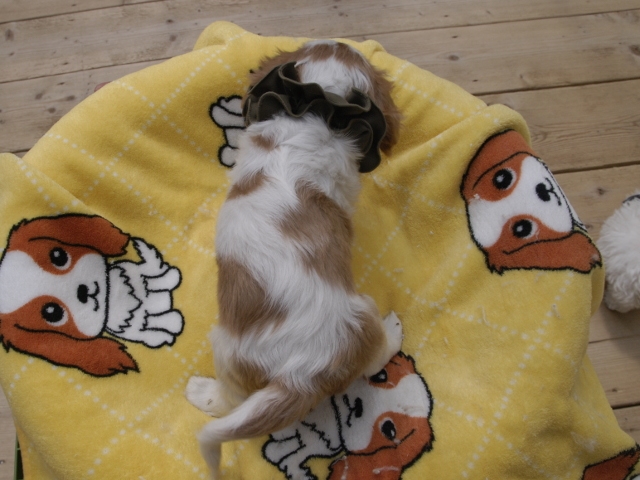 | コメント | お父さんはJKCチャンピオンの家重君、お母さんはチャンピオン直子マドンナちゃんからダンディな男の子です。(緑リボン君) 健康状態は、問題有りません。 すくすく育っています。 |
