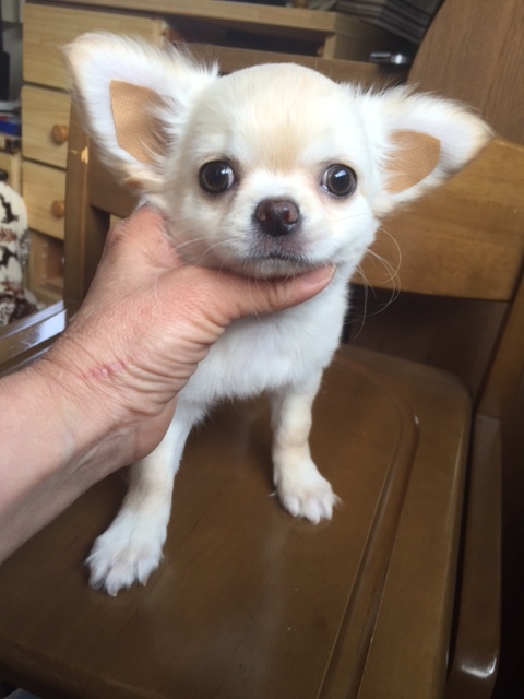 | コメント | ママ候補に残しておりましたが チワワの繁殖縮小をする為 この子を可愛がって頂けるお家を探す事にしました。 タレ目でアイラインくっきりのキラキラした瞳 女の子らしい甘~いお顔 性格は、人間大好き、天真爛漫 明るくて元気な子で毎日、外で走り回ってます。 換毛期も終わり成犬の毛も伸びて来ています。 両親共に耳は立っておりますが この子は、耳が重たいのかな? 半分までは立っておりますが もしかしたら将来、立たないかも?しれませんので タレ耳チワワも可愛いよ~と言って下さる方のお家の子にして頂ければと思います。 お残しの子でしたから小さい頃から色々な月齢の子、成犬達と遊んでますから 犬社会のルールは、しっかり身についてます。 今の所、身体的な欠点は御座いません。 パパ JKCチャンピオン シャルロット君直子 トライ ママ クリーム ワクチンも終わってますからお散歩デビューも すぐ出来ます。 5月からフィラリア予防も しっかりしております。 何時でも お引渡し可能です。 「お願い」 興味本位の見てみたい、触ってみたいだけのペットショップ感覚での見学 ペットショップ、他ブリーダーさんよりの続けての見学は 伝染病予防の為、お断りいたします。 ご家族で良く話し合われた上で お問い合わせ頂けます様 お願い致します。 |