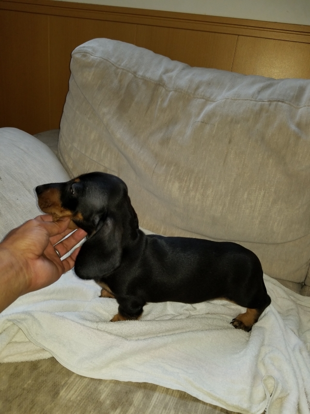 約束の時間より早く到着したのですが、上山さんと、お母様に心よく迎えて頂き、親切で丁寧な対応、ありがとうございました。 ネットで見たダックス君も可愛かったですが、実際に見たダックス君は、想像以上に可愛く、とても良かったです。 帰ってからも、電話で様子など聞いて頂き、嬉しかったです。 可愛い、ダックス君と巡り会えて、有難うございました。(大阪府 女性)