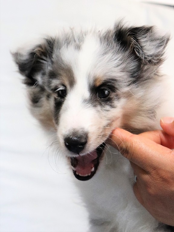 ネットブリーダーズを拝見し、バイブルーで青い目の子犬「銀くん」に一目ぼれしました。また、平山ブリーダー様の口コミがとても良かったこともあり、不安なく連絡をさせていただきました。お問い合わせ後すぐに丁寧な返信をいただき、見学の日程もスムーズに決まりました。 実際に伺うと、かわいいたくさんのシェルティちゃん達に迎えられ、たくさんの質問にも丁寧に答えてくださり、大変安心しました。お迎えした銀くんは、最初の1日はおとなしく心配になるほどでしたが、2日目からは甘えたり鳴いたりと元気を取り戻し、とても可愛い姿を見せてくれています。 平山ブリーダー様の元で大切に育てられてきたことがよく分かり、銀くんをお迎えできて心から良かったと思っています。 素敵なご縁をありがとうございました。(福島県 女性)