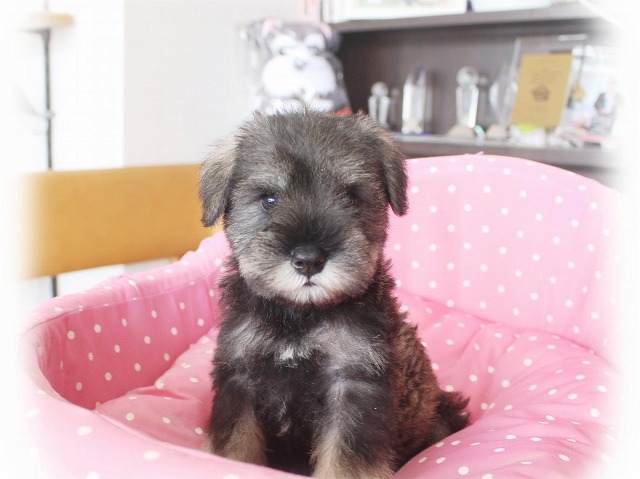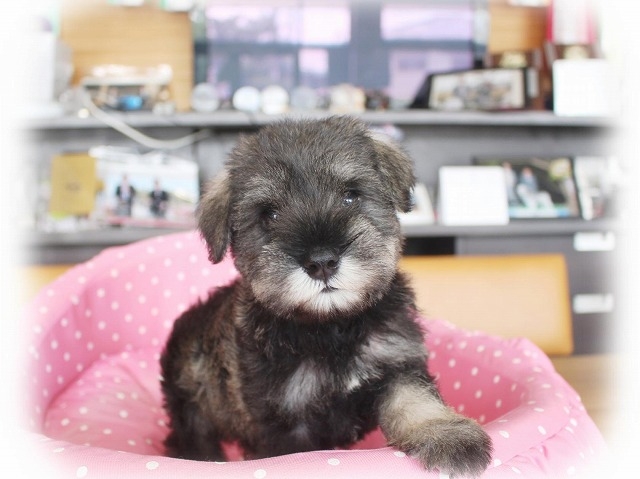 シュナウザーを主力にされているブリーダーさんだと認識しており、ボスちゃんはどうかなあと正直不安でしたがとても可愛く健康的なボスちゃんをいただきました。 掲載されていた写真より実物は想像以上に可愛くて即決し見学させていただいたその日に連れて帰りました。連絡をして、翌日行きますぅって勝手な申し出にも関わらず敏速かつ親切に対応して頂き大満足です。契約に対しても一つ一つ丁寧に説明してくださり、わかりやすかったです。この度は可愛いボスちゃんとのご縁をいただき、本当に有り難うございました。 (大阪府 女性)
