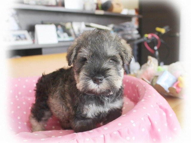 シュナウザーを主力にされているブリーダーさんだと認識しており、ボスちゃんはどうかなあと正直不安でしたがとても可愛く健康的なボスちゃんをいただきました。 掲載されていた写真より実物は想像以上に可愛くて即決し見学させていただいたその日に連れて帰りました。連絡をして、翌日行きますぅって勝手な申し出にも関わらず敏速かつ親切に対応して頂き大満足です。契約に対しても一つ一つ丁寧に説明してくださり、わかりやすかったです。この度は可愛いボスちゃんとのご縁をいただき、本当に有り難うございました。 (大阪府 女性)