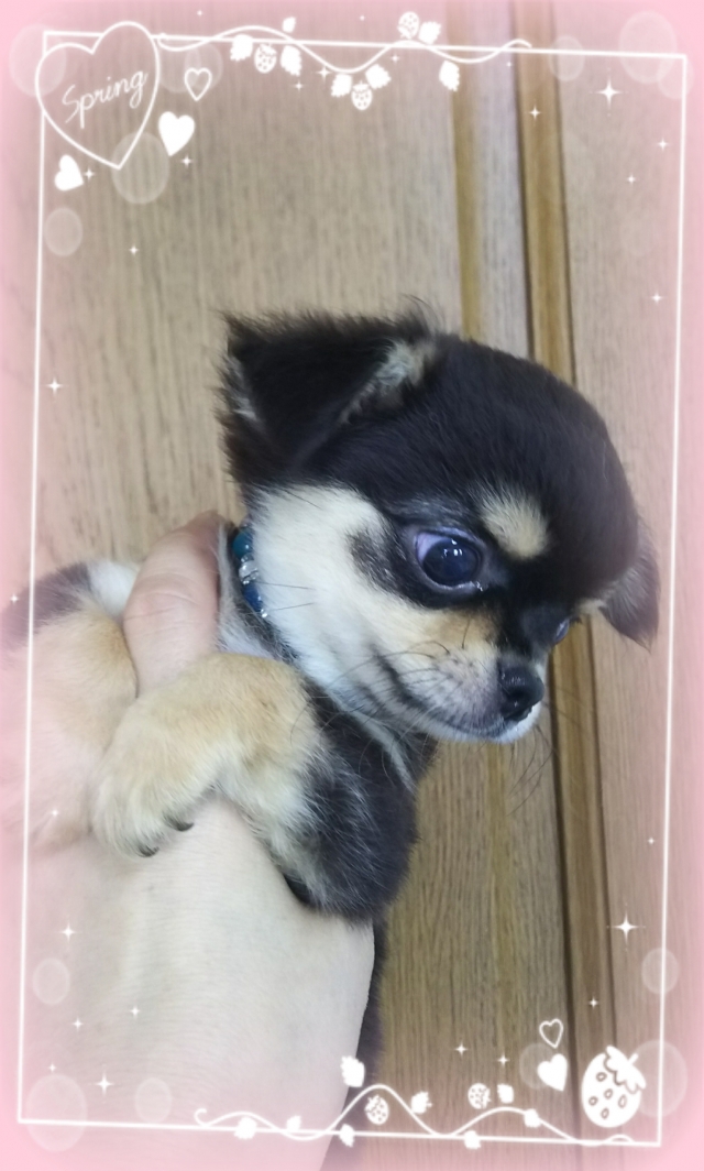 | コメント | タンがクリームになってきて、明るい雰囲気のブラック&タンになりました。 大人し目で、可愛い子です。 飼いやすい子だと思います。 2.5キロ前後の普通サイズになりそうです。 空輸はしておりません。 カード、分割はしておりません。 ご家族様同意の上、お問い合わせ、ご見学ください。 他のブリーダー様、ペットショップさまからの続けてのご見学はお断りしています。 |