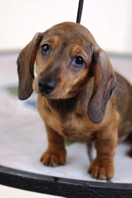 子犬の手渡ししかない奥沢さんですので、茨城県のつくばまで、もらいに行きました。とても犬に対して、愛情深く、飼い主が犬を選ぶのではなく、犬が飼い主をえらぶのだと、私は思います、とおっしゃいまして、子犬を出されました。子犬は私の手の中でしっぽふりふり、顔をぺろぺろ、どうにか私は合格したみたいです。 飼い主があらわれて、売れれば良いというのではなく、子犬と飼い主があうかどうかも、見られているみたいです。 私といたしましては、65歳ですので最後の犬となりますので、相性が最高の犬が欲しかったのです、大げさかもしれませんが、ダックスワイヤーを日本中ネットでさがしました、そうして見つけたのが、奥沢さんのわんちゃんでした。奥様にきれいにワイヤーカットをしていただきどこか品のあるかわいいわんちゃんです。トイレのしつけもされていて、ゲージの中に入ってちゃんとしています。奥沢さんありがとうございました。(大阪府 女性)