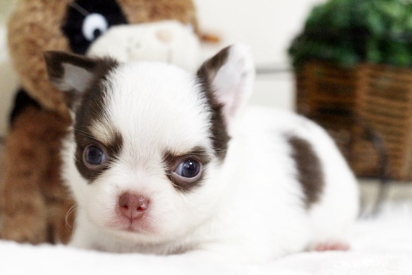 チワワ(ロング) ホワイト&チョコタン ♂(男の子) 佐賀県【 ブリーダーズ 】