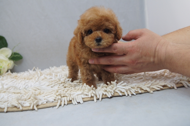 | コメント | ☆とってもとってもカワイイ超超超激カワ♪綺麗なアプリコットの超超超極小!女性の片手のひらサイズの小さい小さいマイクロサイズのプチプーの女の子ちゃんのご紹介です☆ と~っても大きいクリクリまん丸おめめでお顔もとっても詰まってオデコも張っていてお鼻もとってもとっても短く、とってもカワイイですよ(^^)♪ 全体のバランスもとっても良く、胴も詰まっていておててもとってもと~っても短く超超超小さくてとってもとってもカワイイですよ!! 短いおててで、ちょこちょこと歩く仕草や一つ一つの仕草がとってもとってもカワイイですよ♪ 毛量もとっても多くモコモコフワフワで巻きも多くクルクルモコモコでと~ってもカワイイですよ(^^)♪ カラーもとっても綺麗なアプリコットカラーで、耳つき位置もとっても良く本当にとってもカワイイです!! スタイルもとっても◎良いスーパーモデル級のスタイルで将来がとってもとっても楽しみな女の子ちゃんですよ♪ ☆当犬舎の今までの長年の経験から生まれました最高峰の超超超極小!超超超激カワ!のプリンセス!!当方一押し超極小マイクロサイズのプチプーのプリンセスちゃんです!!☆ ●父:レッド 1.2kg←この子の曾お爺さんJKCチャンピオンでとっても良血統の血筋です!! ●母:アプリコット 1.5kg←この仔の父方の曾お爺さんアメリカチャンピオンとJKCチャンピオン、母方の曾お爺さんアメリカチャンピオンでとってもとっても良血統の血筋です!! 両親共に良血統ですよ!! 現在の体重が7月18日(生後74日)現在580gです!!とってもとっても超小さいプチプーちゃんですよ!!! この月齢でこの体重は本当にとってもとっても小さいですよ(^^)v すべてがバランス良く小さくてすっごくカワイイですよ~(^^)♪ 将来の予想はマイクロティーカップサイズ予想です!!(1.2kg~1.5kg位の予想です♪) 性格もすごく◎良く、人間大好きですごく人懐っこく甘えたのカワイイ癒し系の女の子ちゃんですよ(^^)♪ ゲージ内でのおトイレは、ほぼ完璧ですのでゲージ外でのおトイレ もすぐに覚えてくれることと思います!! 現在ご飯もお腹いっぱいしっかり食べていて元気に遊んでおります(^^)♪ 健康状態もバッチリ◎良好です。 ご飯の食べもとっても良い仔なので、ワンちゃんをはじめてお育てになるお客様も安心してワンちゃんをお迎えいただけることかと思いますよ♪ 1回目の5種ワクチン、血統書代、フード1.4kg、ミルク、おもちゃサービスさせて頂いております(^^)v 当日のご見学にもできるかぎりご対応させて頂きますので、どうぞ お気軽にお問い合わせ下さいませ。 ご質問やご相談などもお気軽にお問い合わせ下さいませ。 最寄り駅は南海高野線北野田駅です。 駅からは徒歩10分程度ですよ!! 駐車場も完備致しておりますので、お車でもお気軽にお越し下さいませ。 |