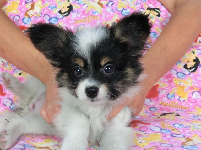 パピヨン トライ(白黒茶の3色) ♀(女の子) 千葉県【 ブリーダーズ 】