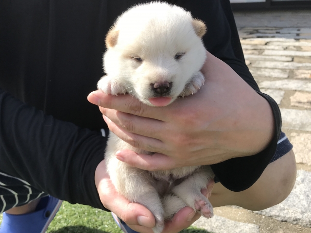 今回、ご縁により白柴を家族として向かい入れることができました。 長崎から沖縄までの移動でしたが、とても元気でみんな大喜びです。 馬越さんには、迅速な対応をしてもらい最初の電話から親切に説明して下さったので、安心して向かい入れることが出来ました。 「分からないことは、いつでも電話してください」との心強いお言葉もありがたく感じております。 家族の一員として大事に育てていきます。本当にありがとうございました。 (沖縄県 男性)