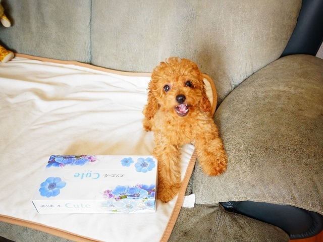 大きさをティッシュ箱と比較・小ぶり子犬