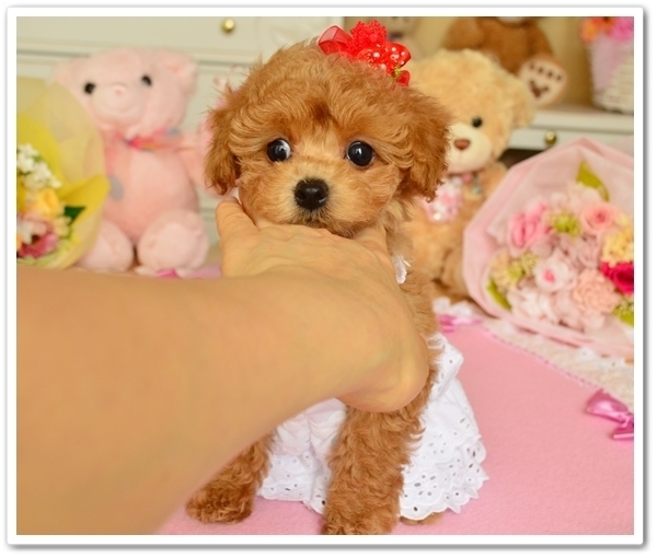 | コメント | ☆☆.。.:*・゜*:.。.超激カワ!特大おめめのアプリ君.。.:*・゜*:.。.☆☆ 目ヂカラのあるまん丸の特大おめめ お鼻上向きでマズルどん詰りの激カワくんです 毛量・巻きともに良く コシのある毛質なので、どんなカットでも似合いますよ! 性格はフレンドリーで無駄鳴きもなく 人間大好きな明るい子です 画像で見るよりもとても可愛いですよ♥ ~~ティーカップ~2キロ予想~~ ワクチン接種済み 健康診断の結果、現時点で異常はございません PRA発症いたしません 大変申し訳ございませんが、ブリーダー様や繁殖目的の方 また上記の方から依頼を受けた方へも販売できません 東北自動車道水沢ICより15分、東北新幹線水沢江刺駅から20分ですので ぜひご見学にいらしてください また、東京駅までの新幹線各駅出張いたします その際の出張費は前金でいただいておりますので ご理解いただきますよう、よろしくお願いいたします 東京以南のお客様には対面代行者にてご見学いただけますので お気軽にお問い合わせくださいませ よいご縁がございますように*:.。.☆☆.。.:*・゜*:.。.☆☆ |