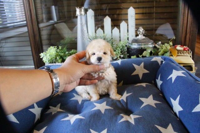 本日、我が家に小さな可愛い女の子のトイプードルがやって来ました。 遠距離という事もあり、暑い時期、飛行機の事なども心配していましだが、家に着いた途端、元気に走り、食欲も旺盛で、今まで大切に育てられてきたのだなぁ、ということがよくわかりました。 連休中にも関わらず、戸田様には、伊丹空港まで連れて来て頂き、こちらの質問にも的確に答えて下さいました。 大変信頼できるブリーダーです。 遠距離で悩まれている方も、安心して新しい家族を迎えられますよ。(兵庫県 男性)