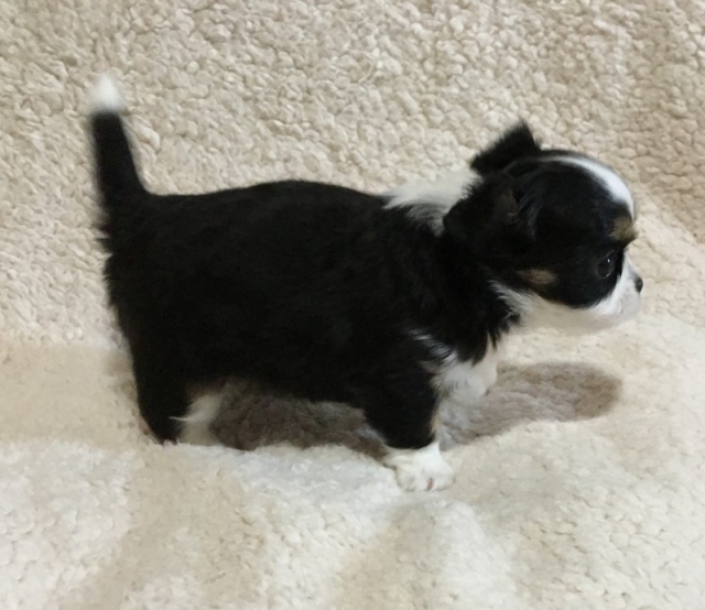 チワワ(ロング) ブラック・クリーム&ホワイト ♀(女の子) 滋賀県【 ブリーダーズ 】