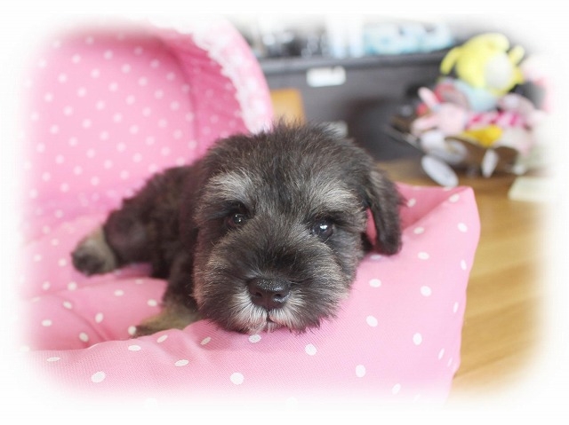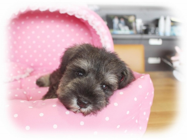 シュナウザーを主力にされているブリーダーさんだと認識しており、ボスちゃんはどうかなあと正直不安でしたがとても可愛く健康的なボスちゃんをいただきました。 掲載されていた写真より実物は想像以上に可愛くて即決し見学させていただいたその日に連れて帰りました。連絡をして、翌日行きますぅって勝手な申し出にも関わらず敏速かつ親切に対応して頂き大満足です。契約に対しても一つ一つ丁寧に説明してくださり、わかりやすかったです。この度は可愛いボスちゃんとのご縁をいただき、本当に有り難うございました。 (大阪府 女性)