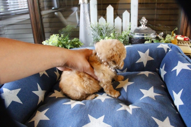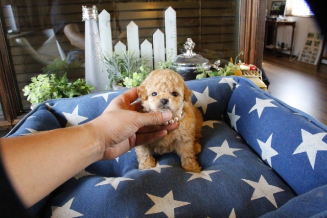 本日、我が家に小さな可愛い女の子のトイプードルがやって来ました。 遠距離という事もあり、暑い時期、飛行機の事なども心配していましだが、家に着いた途端、元気に走り、食欲も旺盛で、今まで大切に育てられてきたのだなぁ、ということがよくわかりました。 連休中にも関わらず、戸田様には、伊丹空港まで連れて来て頂き、こちらの質問にも的確に答えて下さいました。 大変信頼できるブリーダーです。 遠距離で悩まれている方も、安心して新しい家族を迎えられますよ。(兵庫県 男性)