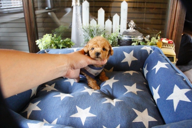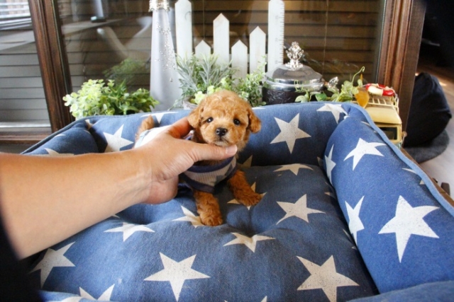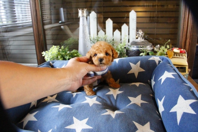 本日、我が家に小さな可愛い女の子のトイプードルがやって来ました。 遠距離という事もあり、暑い時期、飛行機の事なども心配していましだが、家に着いた途端、元気に走り、食欲も旺盛で、今まで大切に育てられてきたのだなぁ、ということがよくわかりました。 連休中にも関わらず、戸田様には、伊丹空港まで連れて来て頂き、こちらの質問にも的確に答えて下さいました。 大変信頼できるブリーダーです。 遠距離で悩まれている方も、安心して新しい家族を迎えられますよ。(兵庫県 男性)