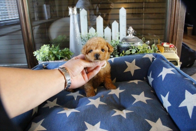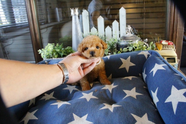 本日、我が家に小さな可愛い女の子のトイプードルがやって来ました。 遠距離という事もあり、暑い時期、飛行機の事なども心配していましだが、家に着いた途端、元気に走り、食欲も旺盛で、今まで大切に育てられてきたのだなぁ、ということがよくわかりました。 連休中にも関わらず、戸田様には、伊丹空港まで連れて来て頂き、こちらの質問にも的確に答えて下さいました。 大変信頼できるブリーダーです。 遠距離で悩まれている方も、安心して新しい家族を迎えられますよ。(兵庫県 男性)