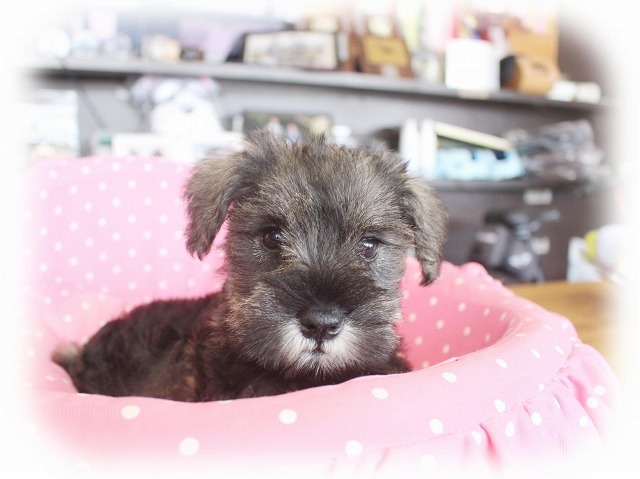 シュナウザーを主力にされているブリーダーさんだと認識しており、ボスちゃんはどうかなあと正直不安でしたがとても可愛く健康的なボスちゃんをいただきました。 掲載されていた写真より実物は想像以上に可愛くて即決し見学させていただいたその日に連れて帰りました。連絡をして、翌日行きますぅって勝手な申し出にも関わらず敏速かつ親切に対応して頂き大満足です。契約に対しても一つ一つ丁寧に説明してくださり、わかりやすかったです。この度は可愛いボスちゃんとのご縁をいただき、本当に有り難うございました。 (大阪府 女性)
