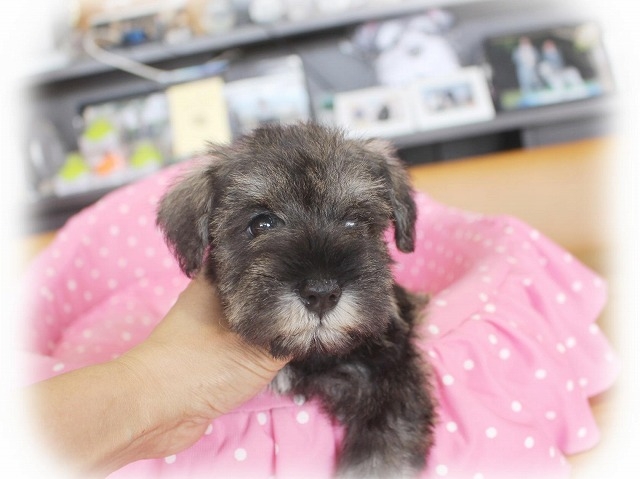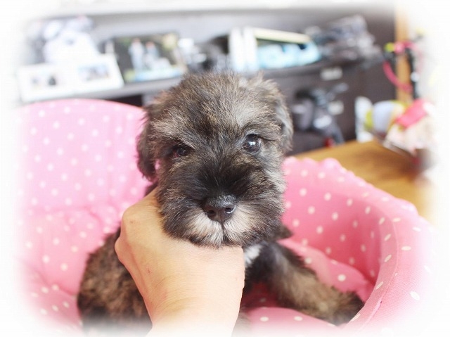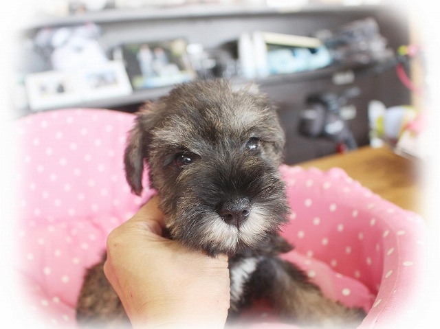 シュナウザーを主力にされているブリーダーさんだと認識しており、ボスちゃんはどうかなあと正直不安でしたがとても可愛く健康的なボスちゃんをいただきました。 掲載されていた写真より実物は想像以上に可愛くて即決し見学させていただいたその日に連れて帰りました。連絡をして、翌日行きますぅって勝手な申し出にも関わらず敏速かつ親切に対応して頂き大満足です。契約に対しても一つ一つ丁寧に説明してくださり、わかりやすかったです。この度は可愛いボスちゃんとのご縁をいただき、本当に有り難うございました。 (大阪府 女性)