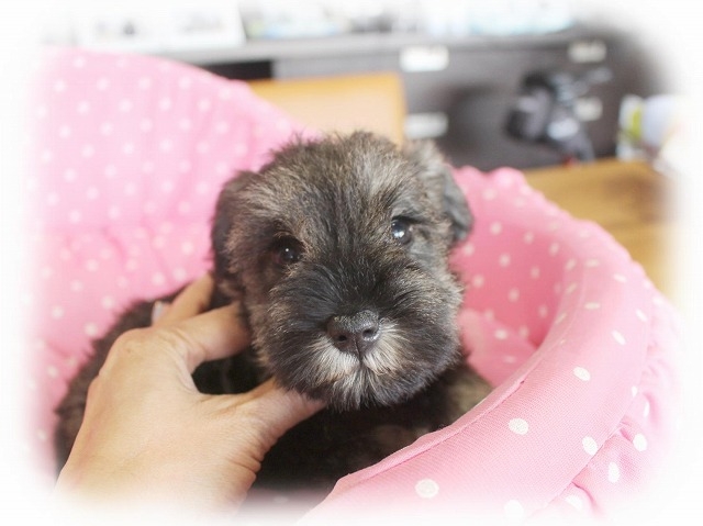 シュナウザーを主力にされているブリーダーさんだと認識しており、ボスちゃんはどうかなあと正直不安でしたがとても可愛く健康的なボスちゃんをいただきました。 掲載されていた写真より実物は想像以上に可愛くて即決し見学させていただいたその日に連れて帰りました。連絡をして、翌日行きますぅって勝手な申し出にも関わらず敏速かつ親切に対応して頂き大満足です。契約に対しても一つ一つ丁寧に説明してくださり、わかりやすかったです。この度は可愛いボスちゃんとのご縁をいただき、本当に有り難うございました。 (大阪府 女性)