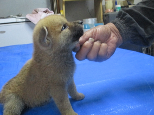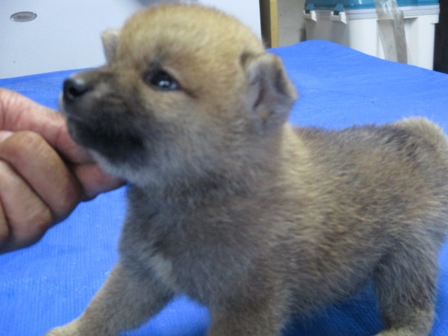 初めて見学で伺った際に、並んで日向ぼっこをしている親犬たちを見て、その時点で高橋さんなら安心だと感じました。事前に希望していたこともあり、母犬と父犬を先に見せていただきましたが、母犬のあまりの人懐こい性格にやられてしまい、実は子犬を見る前に是非譲っていただこうという気持ちになっておりました。 見学の時、譲渡の時といろいろな話をさせてもらい、小さな気付きなども折り込んで教えてもらえるのでやはり柴犬ならこうした専門の方が信頼出来ます。 子犬が我が家に来て二週間が経ち、きょうだいのなかでも一回り小さかったこともあり、やはり成長もやや遅い感じではありますが、母性を刺激された先住犬が頑張って見守ってくれており、予想外ではあるものの家族全員一安心です。 この度は本当にありがとうございました。この子が幸せになれるよう精一杯向き合っていきます。 なお、今後検討されている方への注意事項をひとつだけ書いておきます。問い合わせや見学希望に対しての高橋さんからの返信は電話です。メールでの返信ではありませんので気を付けてください。(宮城県 男性)
