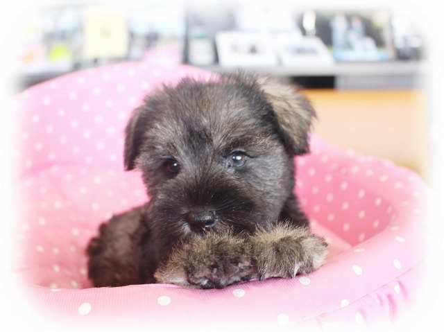 シュナウザーを主力にされているブリーダーさんだと認識しており、ボスちゃんはどうかなあと正直不安でしたがとても可愛く健康的なボスちゃんをいただきました。 掲載されていた写真より実物は想像以上に可愛くて即決し見学させていただいたその日に連れて帰りました。連絡をして、翌日行きますぅって勝手な申し出にも関わらず敏速かつ親切に対応して頂き大満足です。契約に対しても一つ一つ丁寧に説明してくださり、わかりやすかったです。この度は可愛いボスちゃんとのご縁をいただき、本当に有り難うございました。 (大阪府 女性)