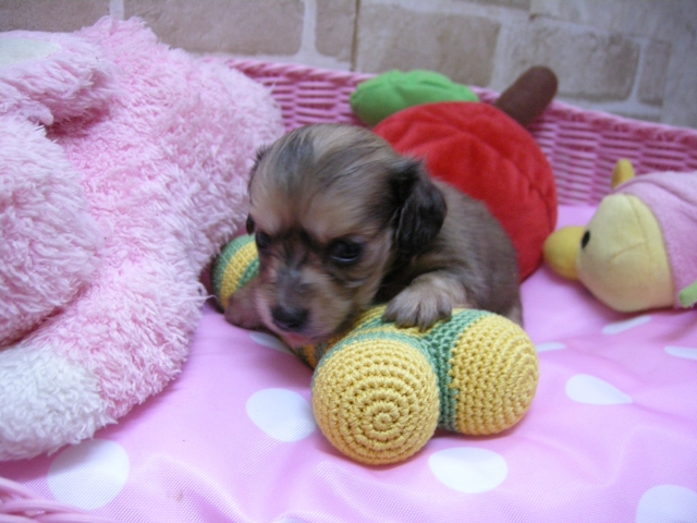 | コメント | お父さん『ロック』君!2.3㌔の超オチビのカニーヘンダックス!レッドです! しかもPRAクリア! お母さん『ことね』ちゃん2.5㌔の美人ちゃん!シェイテッドクリームの女の子! もちろんPRAクリアー! 両親がPRAクリアの子はまずいないですよ!日本中のダックス、ブリーダーを調べてみてください!!! よそのカニーヘンと比べてみてください! 『ブリーダーとしてのマナーです!』 ダックスをメインにブリーデングしています!自信のある赤ちゃんです! 皆様からのお問い合わせ、ご見学お待ちしています! 大阪市 濱田 |